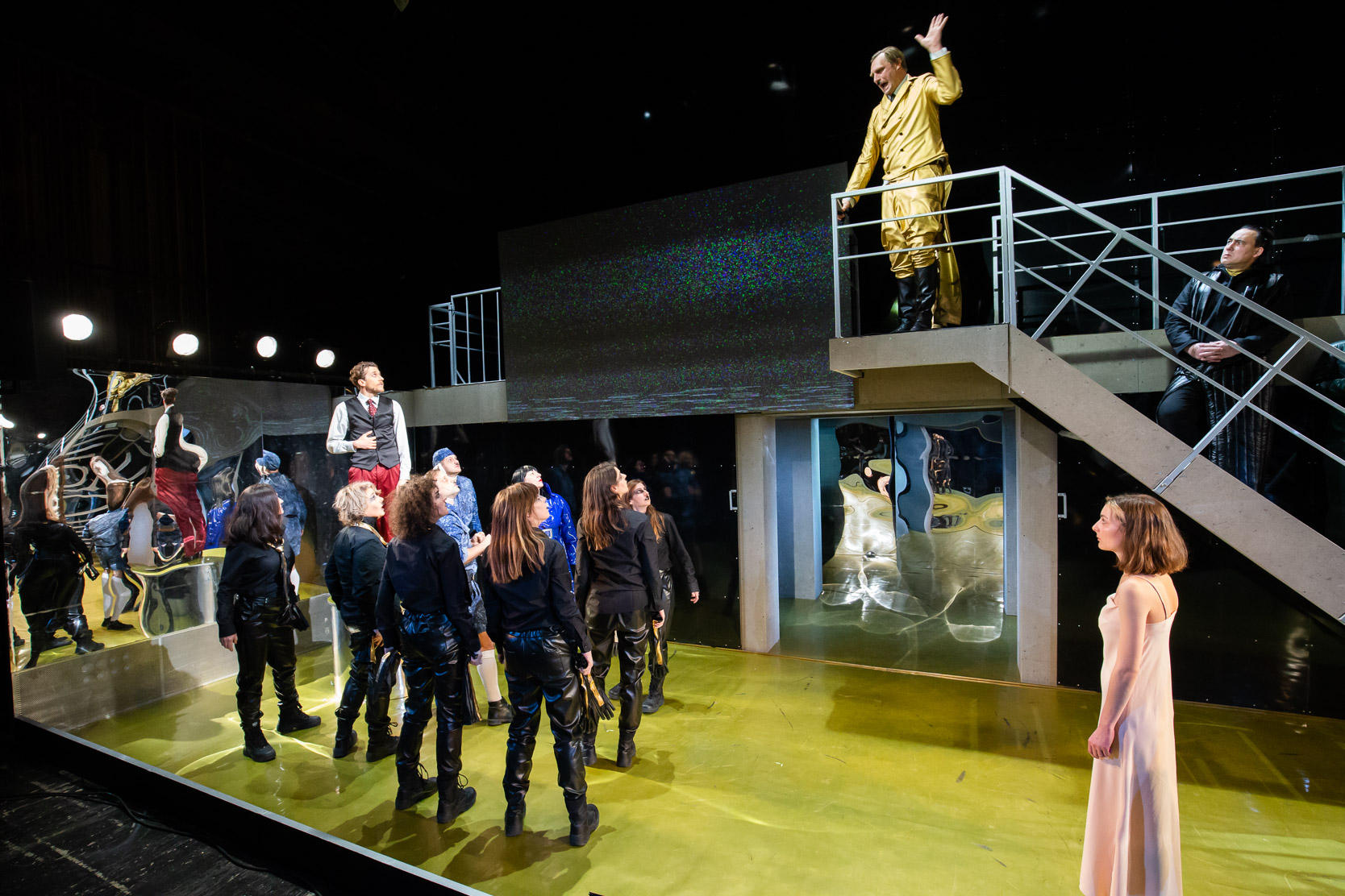 A sepsiszentgyörgyi Tamási Áron Színház Bocsárdi László által rendezett előadása látványos, tűzijátékszerű, multimédiás színházi röntgenfelvétel „elkorcsosuló korunkról”. Arról, hogy mindent a saját képünkre formáltunk, Isten akaratát százféleképpen félreértelmeztük, hogy csúcsra járatott egónk átvegye a teljes irányítást életünk felett. A fasizmushoz nem is kell egyéb, mint egy féktelen egójú vezető és a tömeggé fajult nemzet.