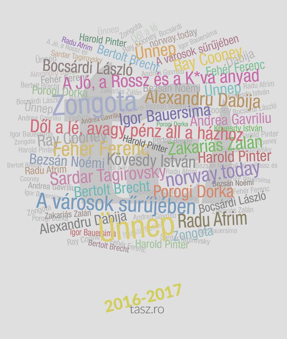 A Tamási Áron Színház augusztus 23-án az előző évekhez hasonlóan társulati gyűlésével nyitotta meg 2016/2017-es évadát. A társulat az új évadban öt bemutatót tervez, és www.tasz.ro címen új honlappal indít. A Gyulai Várszínház, a Háromszék Táncegyüttes és a Tamási Áron Színház közös produkciójának, a Sardar Tagirovsky által rendezett Zongotának a sepsiszentgyörgyi bemutatójára szeptember 14-én este 19 órai kezdettel kerül sor a színház Nagytermében. Az előadás, ami Tamási Áron Zöld ág című regényének a továbbgondolása, egyfajta emlékállítás és tisztelgés a színház névadója halálának 50-ik évfordulója alkalmából.
