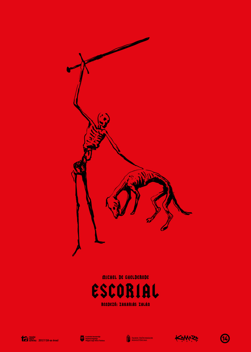Michel de Ghelderode (1898–1962), pe numele său adevărat Adhémar-Adolphe-Louis Martens, a scris peste 60 de piese şi numeroase povestiri bizare, fiind recunoscut drept precursorul avangardei teatrale moderne. Creator al unei lumi fantastice şi deseori terifiante, dramaturgul belgian a cunoscut succesul abia după 50 de ani, Escurial (1929) fiind una dintre piesele sale cele mai jucate. Este vorba de o farsă macabră, povestea unui monarh orbit de putere şi de ură, care îi propune bufonului său un joc ce scapă de sub control. Povestea unui carnaval grotesc, cu roluri inversate şi măşti schimbate, în care regizorul Zalán Zakariás a găsit elementele necesare pentru un spectacol în acord cu obsesiile sale artistice: experienţe umane la limită, care le oferă actorilor din distribuţie şansa unor performanţe artistice memorabile; un text ce combină burlescul cu tragicul şi insolitul, care-i lasă regizorului libertatea de a construi o lume halucinantă, cu forţa de a stîrni râsul, dar şi de a-i face pe spectatori să tresare – de emoţie, de spaimă sau de tristeţe.